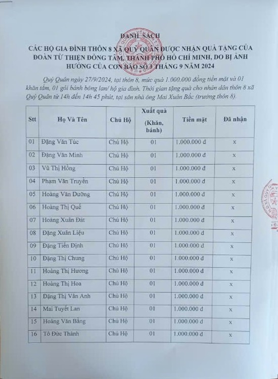 BÁO CÁO QUỸ CỨU TRỢ 2 THÔN XÃ QUÝ QUÂN – TUYÊN QUANG